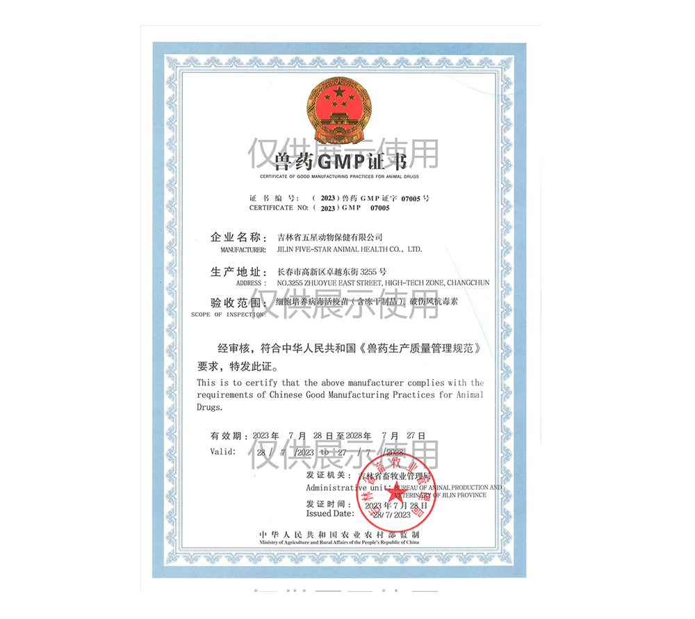 獸藥GMP證書地址:吉林省長春市高新區(qū)卓越東街3255號(hào) 售后服務(wù)電話:400-788-8585